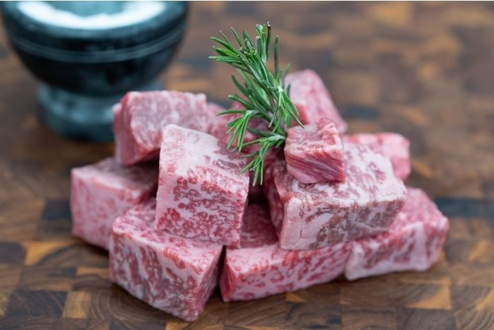 Australian Marble Score 9+ Cubes. Outside fat trimmed off. Perfect for grilling.