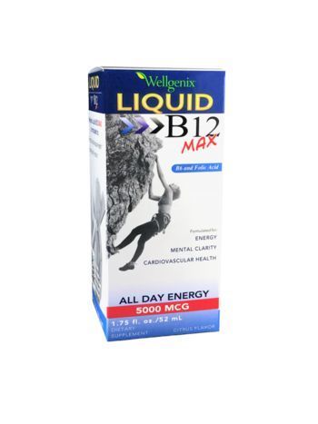Wellgenix Liquid B12 Max 5000Mcg Citrus Dietary Supplement - 1.75 Ounces