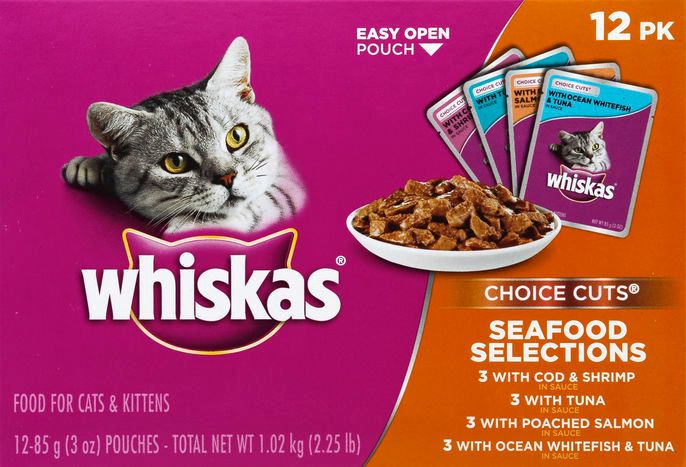 With Poached Salmon in Sauce: Sufficient Water for Processing Chicken Meat By-Products Wheat Gluten Salmon Starch Salt Natural Flavor Sodium Tripolyphosphate Added Color Guar Gum Potassium Chloride Magnesium Sulfate Taurine Choline Chloride DL-Methionine Vitamin E Supplement Zinc Sulfate Ferrous Sulfate Thiamine Mononitrate (Vitamin B1) Copper Sulfate Manganese Sulfate Pyridoxine Hydrochloride (Vitamin B6) Potassium Iodide Vitamin D3 Supplement Folic Acid Menadione Sodium Bisulfite Complex (Source of Vitamin K Activity) With Tuna in Sauce: Sufficient Water for Processing Chicken Meat By-Products Wheat Gluten Tuna Starch Salt Natural Flavor Sodium Tripolyphosphate Added Color Guar Gum Potassium Chloride Magnesium Sulfate Taurine Choline Chloride DL-Methionine Vitamin E Supplement Zinc Sulfate Ferrous Sulfate Thiamine Mononitrate (Vitamin B1) Copper Sulfate Manganese Sulfate Pyridoxine Hydrochloride (Vitamin B6) Potassium Iodide Vitamin D3 Supplement Folic Acid Menadione Sodium Bisulfite Complex (Source of Vitamin K Activity) With Ocean Whitefish & Tuna in Sauce: Sufficient Water for Processing Chicken Meat By-Products Wheat Gluten Ocean Whitefish Tuna Starch Natural Flavor Salt Sodium Tripolyphosphate Zinc Sulfate Ferrous Sulfate Thiamine Mononitrate (Vitamin B1) Copper Sulfate Manganese Sulfate Pyridoxine Hydrochloride (Vitamin B6) Potassium Iodide Vitamin D3 Supplement Folic Acid Menadione Sodium Bisulfite Complex (Source of Vitamin K Activity) With Cod & Shrimp in Sauce: Sufficient Water for Processing Chicken Meat By-Products Wheat Gluten Cod Shrimp Starch Salt Natural Flavor Sodium Tripolyphosphate Added Color Guar Gum Potassium Chloride Magnesium Sulfate Taurine Choline Chloride DL-Methionine Vitamin E Supplement Zinc Sulfate Ferrous Sulfate Thiamine Mononitrate (Vitamin B1) Copper Sulfate Manganese Sulfate Pyridoxine Hydrochloride (Vitamin B6) Potassium Iodide Vitamin D3 Supplement Folic Acid Menadione Sodium Bisulfite Complex (Source of Vitamin K Activity)