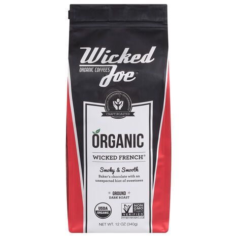 Wicked Joe Coffee, Organic, Ground, Dark Roast, Wicked French - 12 Ounces