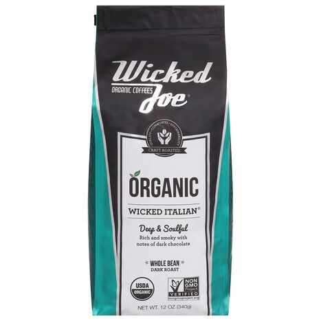 Wicked Joe Coffee, Organic, Whole Bean, Dark Roast, Wicked Italian - 12 Ounces