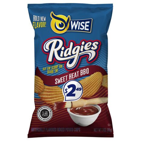 Wise Potato Chips, Ridged, Sweet Heat BBQ - 3 Ounces
