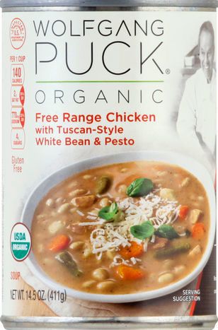 Wolfgang Puck Soup, Organic, Free Range Chicken with Tuscan-Style White Bean & Pesto - 14.5 Ounces