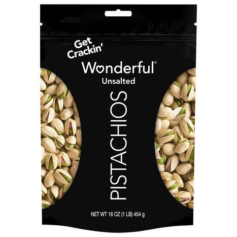 Wonderful Pistachios: Hold the salt, not the flavor. No Salt Wonderful Pistachios are the perfect snack for any healthy diet. Sodium free, these tasty, heart-healthy pistachios are a natural for anyone looking for great roasted taste without the salt. Heart Healthy: Scientific evidence suggests but does not prove that heart eating 1.5 ounces per day healthy of most nuts, such as pistachios, as part of a diet low in saturated fat and cholesterol may reduce the risk of heart disease. See nutrition information for fat content. Non GMO Project verified. nongmoproject.org. Gluten free. getcrackin.com. Questions or comments? Call: 1-877-450-9493. Product of USA.