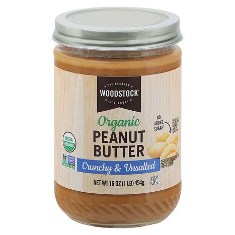Woodstock Peanut Butter, Organic, Crunchy & Unsalted - 16 Ounces