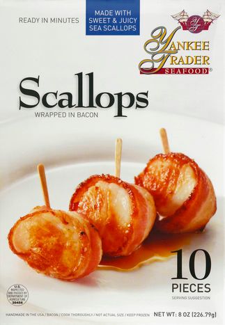 Scallops, Bacon (Cured with Water, Salt, Sugar, Sodium Phosphates, Sodium Erythorbate, Sodium Nitrite).