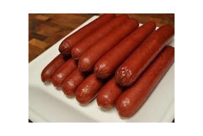 Ingredients: Beef, beef fat, salt, dextrose, sodium, phosphates, spice extractives, silicon dioxide, wheat flour, yellow corn flour, rye flour, non fat dry milk, dried whey, citric acid, cottonseed oil, soybean oil, coriander, sodium citrate, nutmeg, garlic powder, white pepper, mace,natural hickory smoke concentrate.