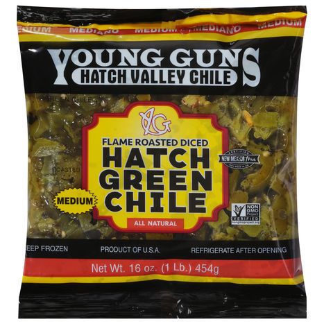 Young Guns Hatch Green Chile, Flame Roasted, Medium, Diced - 16 Ounces