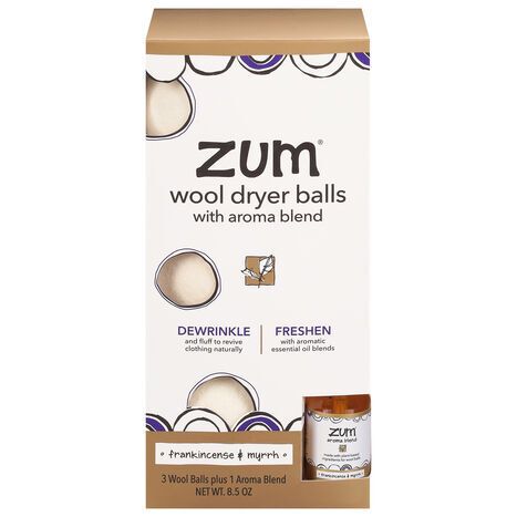 Zum Wool Dryer Balls, with Aroma Blend, Frankincense & Myrrh - 1 Set