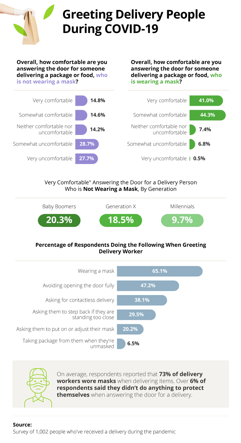Before the pandemic, deliveries came with a knock at the door and a smile. Now, over 56% of people receiving deliveries feel at least somewhat uncomfortable answering the door for someone who isn’t wearing a mask.