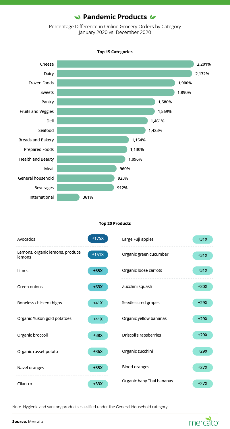 After collecting sales data from premier online grocer Mercato, we can see exactly what that online grocery shopping looked like. What were people buying online and when?