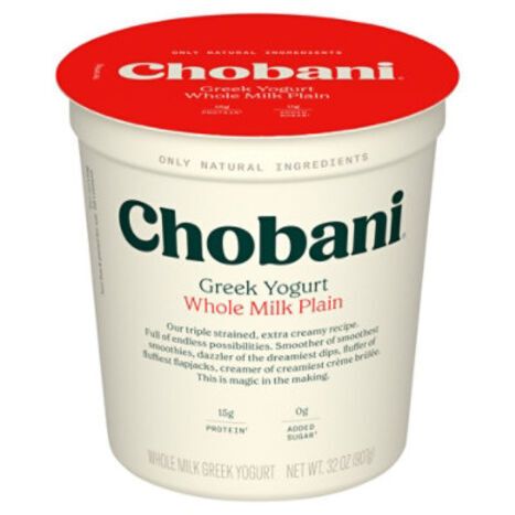 Chobani Yogurt, Greek, Whole Milk, Plain - 32 Ounces